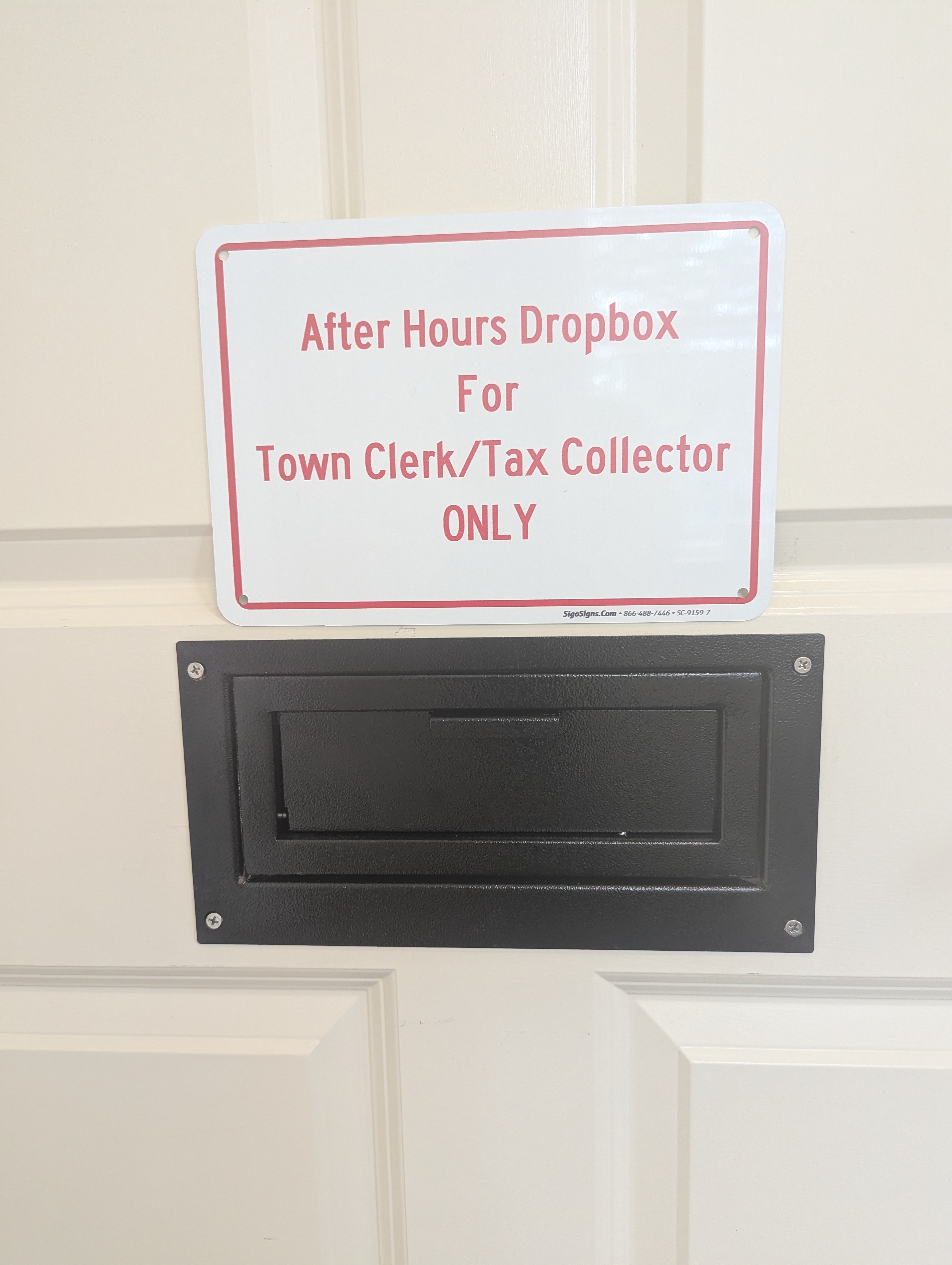 We have added a Secure Dropbox in the door to our office. This will only be for Tax Payments and Registration Renewals. Please - Do Not Put Anything for Other Offices in this Box.